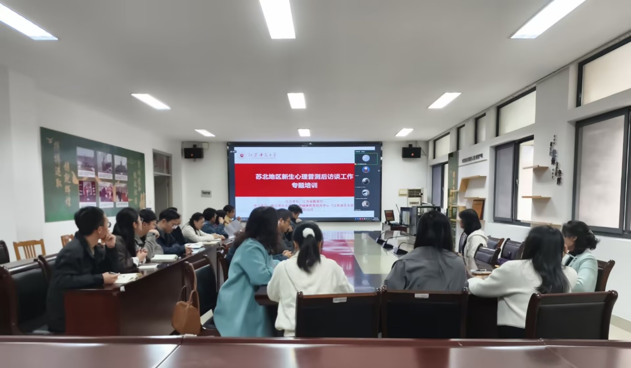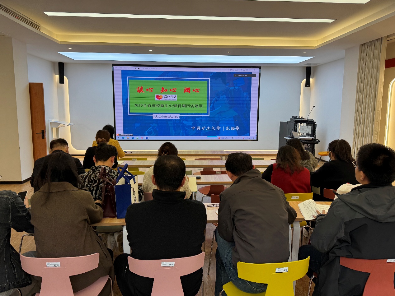 10月30日,我校心理辅导员、新生班主任代表以及心理健康教育中心共60余人齐聚新长校区学工楼,参加新生心理普测后访谈工作专项培训。活动由江苏省教育厅主办、苏北地区大学生心理健康教育研究中心(江苏师范大学)承办。