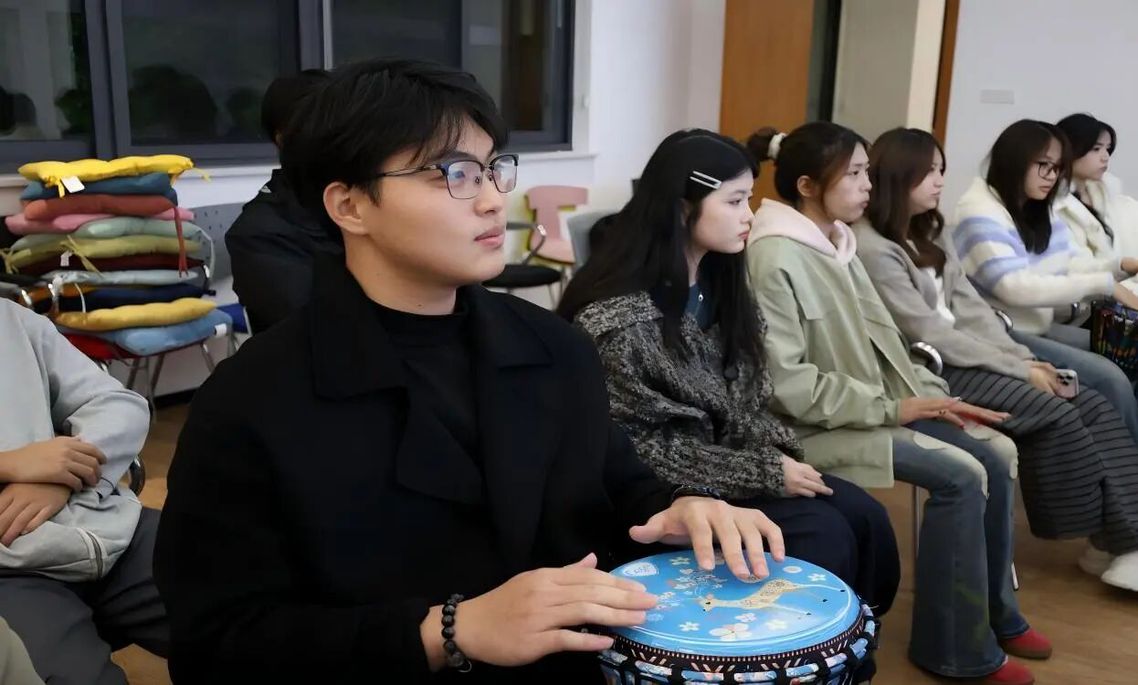 “第二次打鼓时,我感觉更放松也更投入了。和同一批同学一起,从陌生到默契,整个过程本身就很有治愈感。”音乐学院2025级学生韩嘉豪在参与后活动分享道。