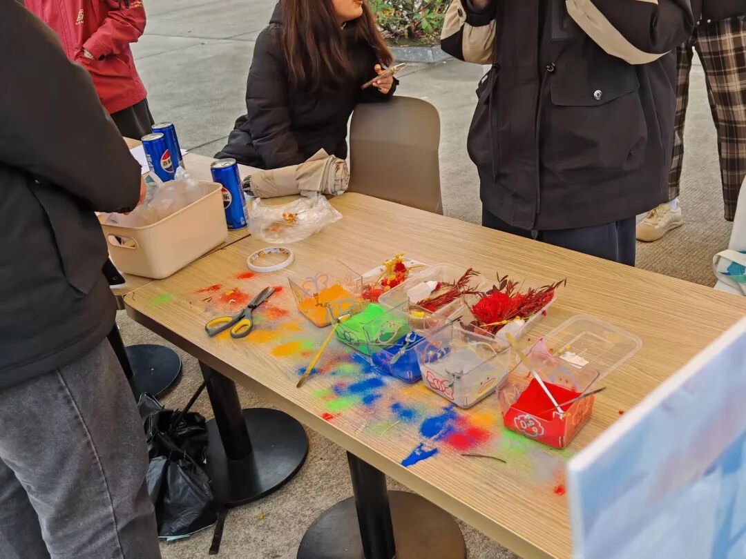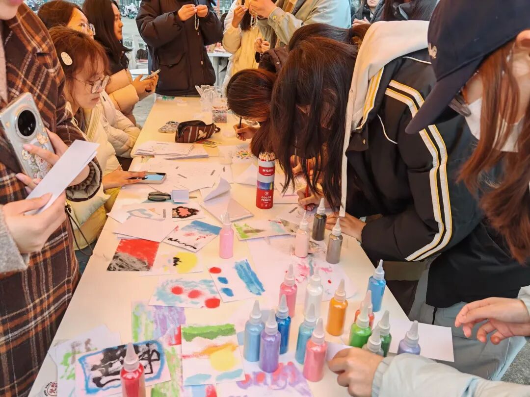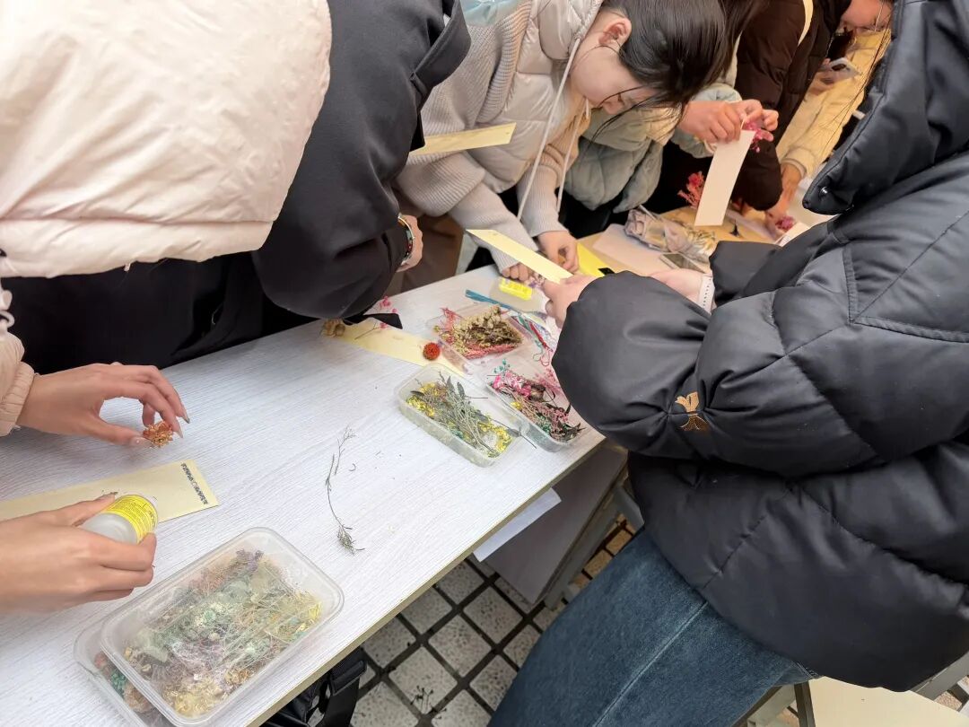 心情色谱采集、植物拓染工坊、书签盲盒交换三大活动精彩上演。同学们用色彩定格心情,以草木拓印美好,在手绘与交换的细腻互动中传递温暖,让艺术之美滋养心灵、释放情绪。