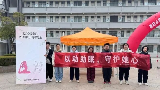 2026年3月18日下午,人工智能学院在主楼北侧广场举办“320心灵密语:以动助眠,守护她心”大学生心理健康日主题活动。本次活动将运动干预与睡眠管理相结合,为200余名大学生构建沉浸式心理健康教育场景。