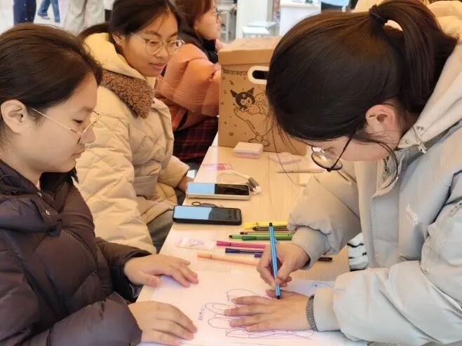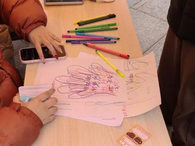 活动现场设置三大互动板块。在 “心灵驿站・手心寄语” 区,学生手绘掌心寄语、接力相连,构筑斑斓 “掌心星河”,在文字与色彩中传递温暖力量;“活力快闪・微运动挑战” 区创新融合短时健身与心理科普,开展 15 秒高抬腿挑战,在律动中释放身心压力;“心语树洞・她声回响” 区吸引学生匿名投递心声困扰,经筛选后温暖回应、公开展示,营造被倾听、被理解的治愈氛围。