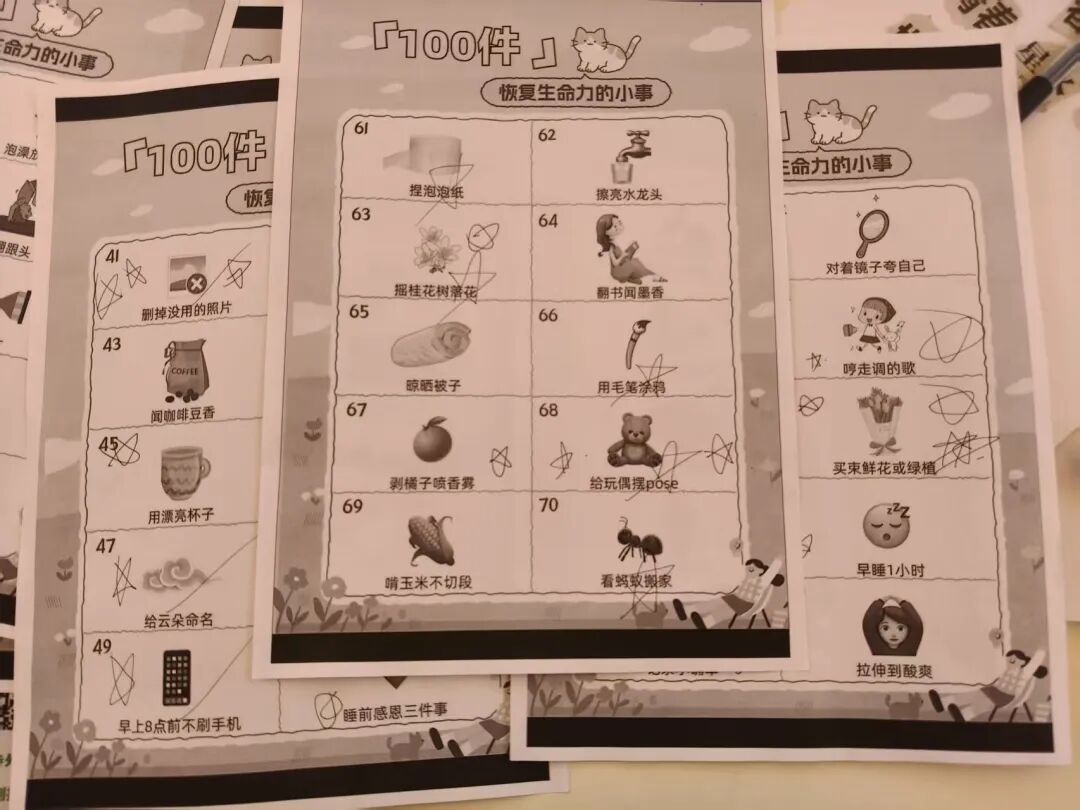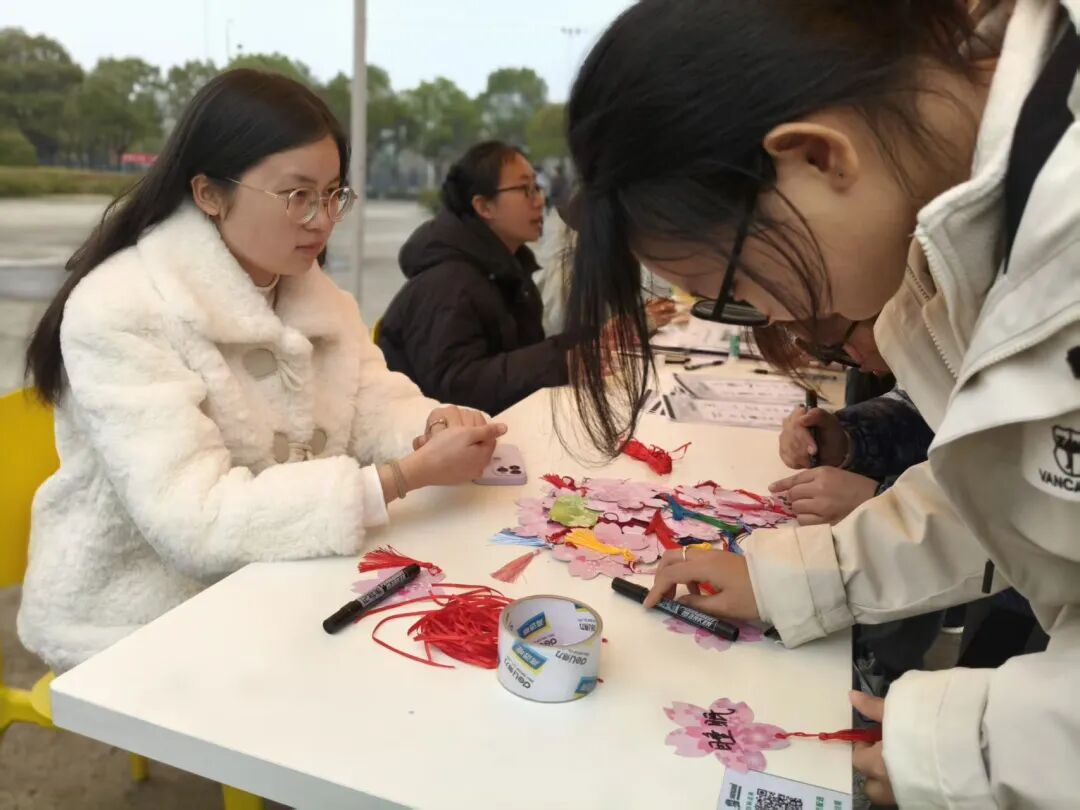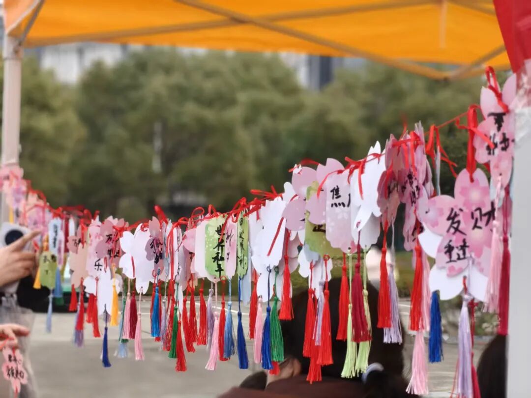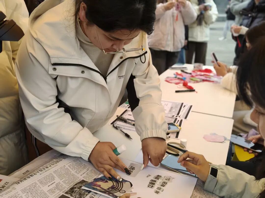 活动设置创意表达、能量唤醒、情绪释放三大互动板块,让学生在沉浸式体验中释放情绪、滋养心灵。“拼一首春天的诗”环节以报纸、杂志为创作素材,鼓励学生自由拼贴文字与图案,不拘形式、不限韵律,在动手创作中抒发情感、定格春意,以艺术表达舒缓心理压力。“开学季100件恢复能量的小事”能量清单区,引导学生梳理生活中的温暖小事,在选择与标记中唤醒积极状态,把日常小确幸转化为前行的心理能量。现场还设有“烦恼挂棚”治愈专区,学生将烦恼与焦虑写于卡片并系挂于棚边,以仪式化方式完成情绪释放,实现与自我的和解。