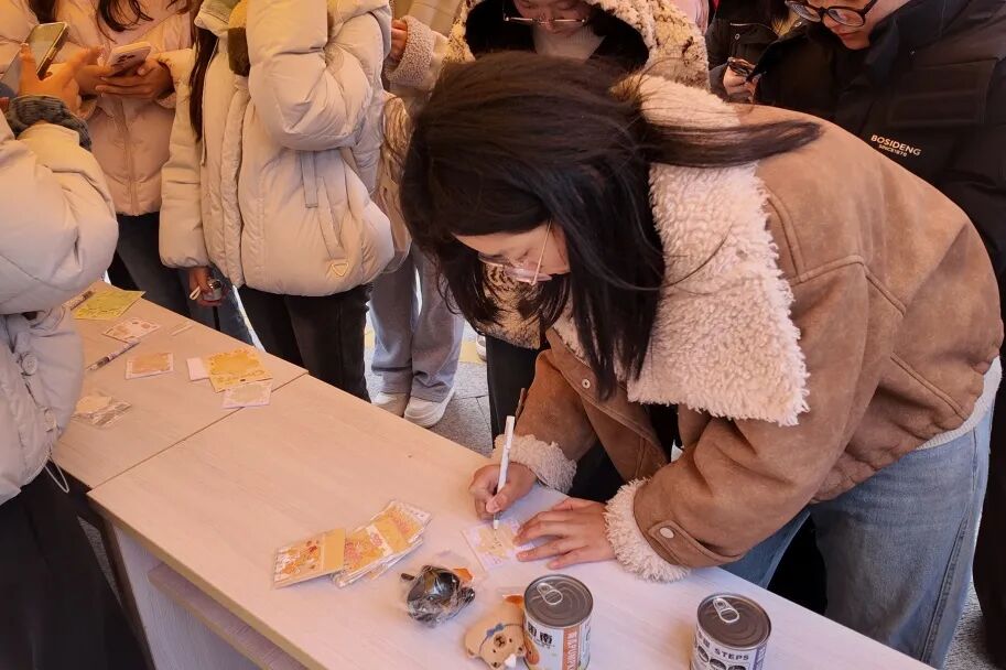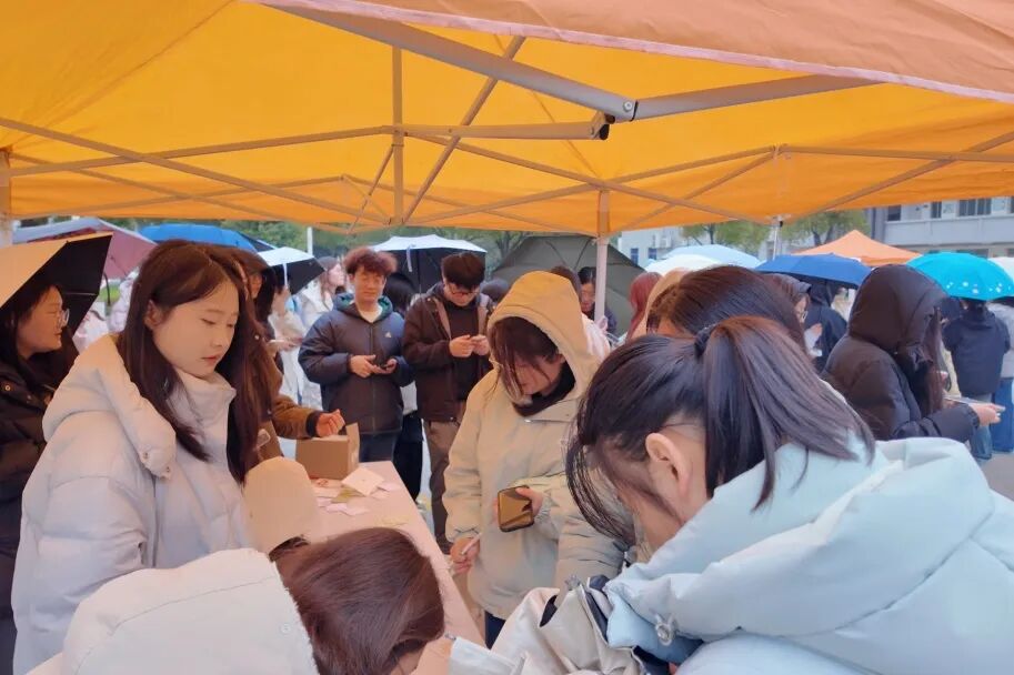 活动现场暖意融融,橙色帐篷下人头攒动,色彩斑斓的展示板与整齐的签到台相映成趣,处处洋溢着温馨治愈的氛围。同学们满怀期待地参与其中,在轻松的互动中卸下生活与学业的重担,解锁元气满满的校园生活。