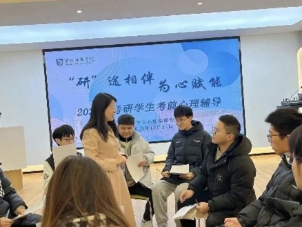“研”途相伴,为心赋能:在考试阶段,心理健康教育中心特别开展了心理委员考前心理技能训练系列活动。通过“‘研’程似箭·一击必中”广场活动、团体心理辅导及发布的考试解压计,帮助学子科学应对压力。其中引入的“耶克斯-多德森定律”等心理学知识,让学生理解动机与效率的关系,学会调节焦虑,以最佳状态迎接挑战,也为心理委员服务特定学生群体积累了宝贵经验。
